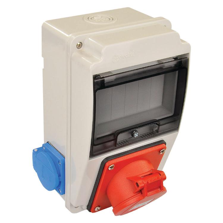 Бокс для автоматичного вимикача 130x220мм з розетками: силова 16А/4 (3Р+РЕ), панельна 16А (2шт), IP44, TP electric - 60-39-91 - Бокси для електромонтажного устаткування