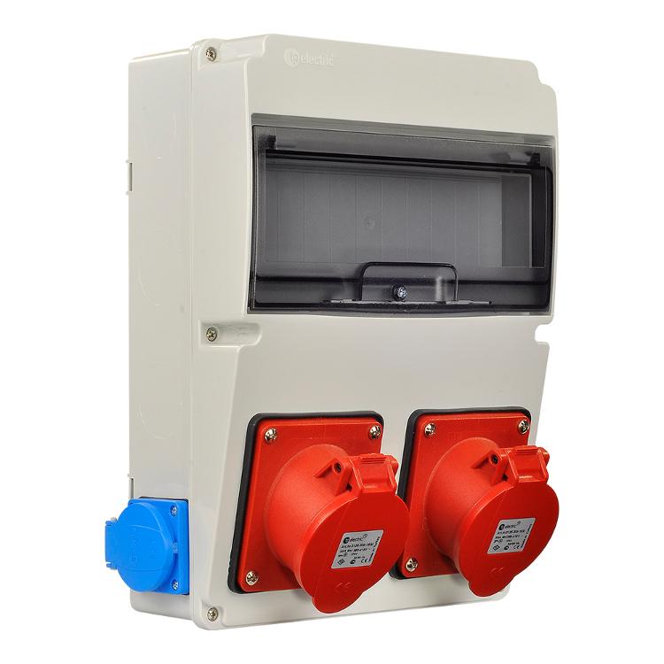 Бокс для автоматичного вимикача 220x300мм з розетками: силова 32А/5 (3Р+N+РЕ) (2шт), панельна 16А (2шт), IP44
