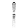 - Полное отсутствие пластиковых деталей. Латунный сердечник и мателлический корпус обеспечивают максимальное время эксплуатации коннектора.