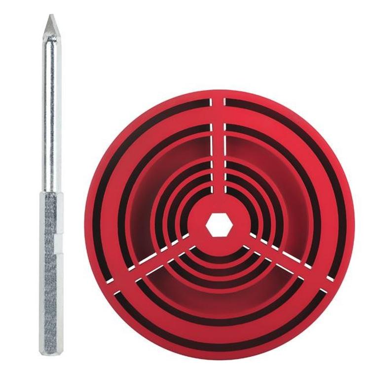 Универсальный держатель для кольцевых коронок разного диаметра (33, 43, 53, 63, 67, 73, 83, 93, 103 мм), поставляется в комплекте с центрирующим сверлом.