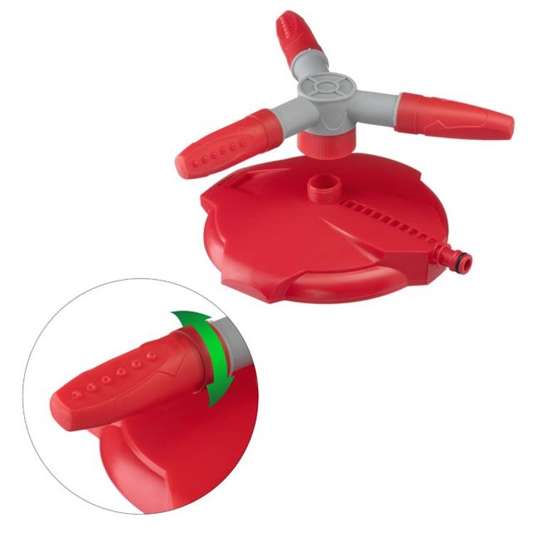 Ороситель круговой (тройная вертушка) незаменим, когда необходимо полить участок, огород, газон, клумбу и прочее. В отличие от ручного полива из шланга, почва увлажняется равномерно, не образовываются лужи, к тому же вы не прикладываете больших усилий на полив.