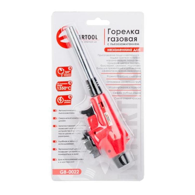 Горелка газовая, пьезозажигание на курке, регулятор, удлиненное сопло INTERTOOL GB-0022