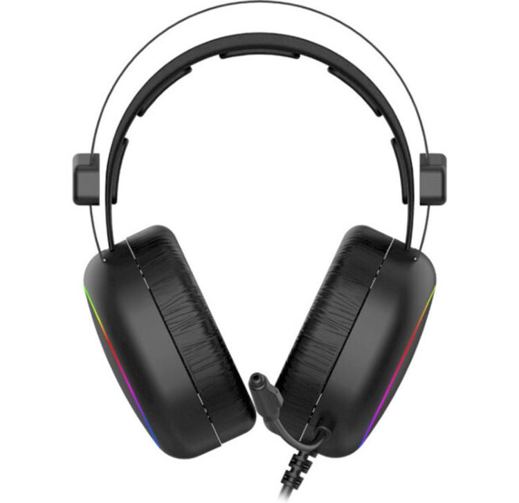 Ігрові навушники для комп'ютера Havit HV-H2016d - це надійна і комфортна ігрова гарнітура. У корпус навушників вбудоване LED підсвічування червоного кольору. Модель представлена з регульованим винесеним мікрофоном. Аксесуар виготовлений з міцних матеріалів, має якісну збірку. Наголывник дозволяє пристосувати навушники за формою голови будь-якої людини. Завдяки якісному динаміку c чутливістю 110 дБ можна насолоджуватися потужним і насиченим звучанням улюблених композицій не відволікаючись на сторонні шуми. Вбудований кабель має довжину 2 метра і два виходи AUX з роз'ємом 3,5 мм плюс штекер USB для роботи підсвічування. Кабель в текстильній обмотці захищає від сплутування і переломлення.