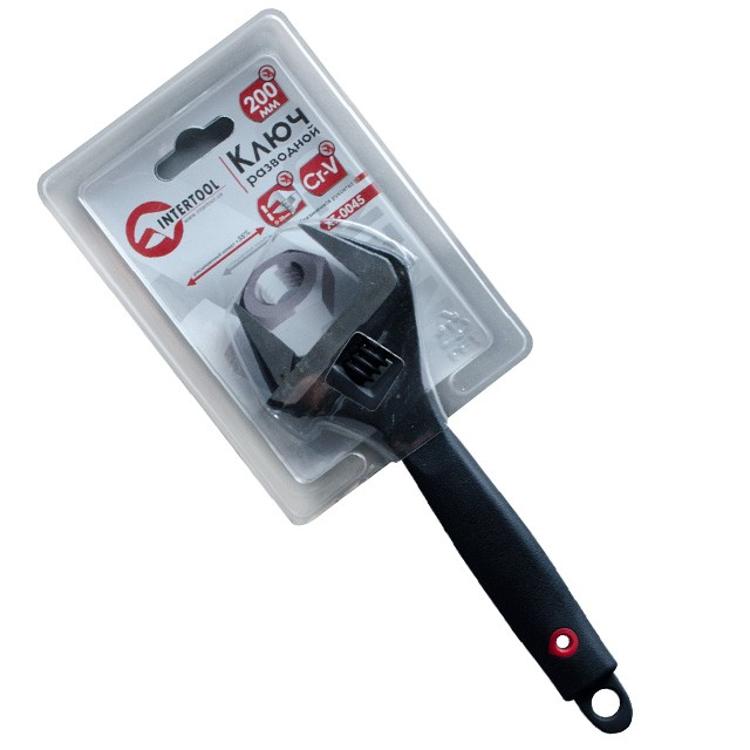 Ключ разводной 200 мм, обрезиненная рукоятка, развод губок 38 мм, Cr-V INTERTOOL XT-0045