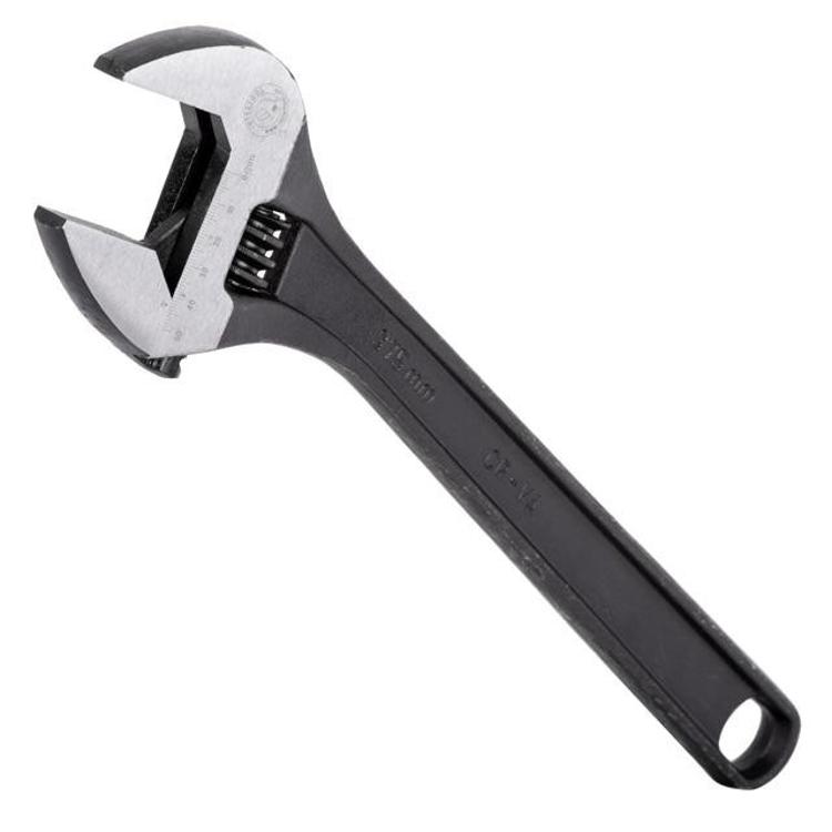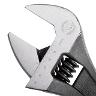 Разводной механизм прочный и не дает люфт в работе, благодаря конструкционным особенностям ключа. Длинная ручка позволит удобно маневрировать разводным ключом и применять еще больше усилия.