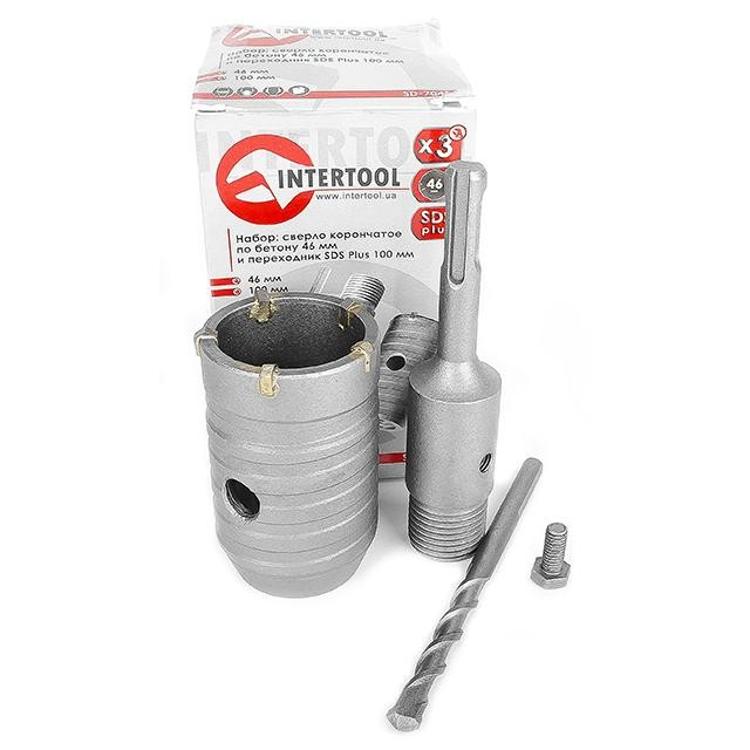 Комплект: сверло корончатое по бетону 46 мм+Переходник SDS Plus 100мм INTERTOOL SD-7046