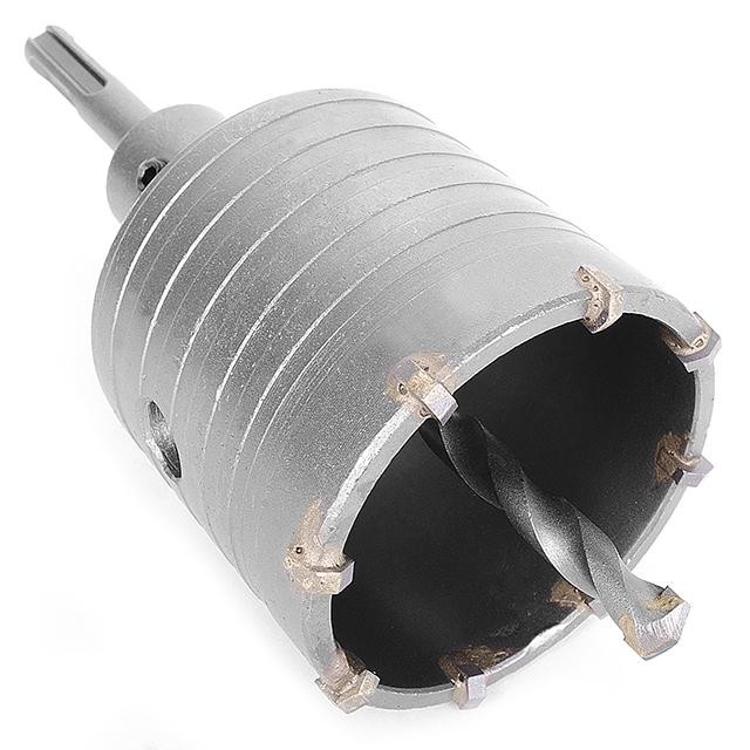 Комплект INTERTOOL SD-7065 для перфораторов состоит из: 65 мм коронки по бетону, переходника SDS-Plus 100 мм с центрирующим сверлом. Сама коронка оснащена твердосплавными напайками. Инструменты изготовлены из стали марки 40 Cr. Твердость коронки по шкале Роквелла — 53–54 HRC, а твердость наконечника — 90 HRC.
