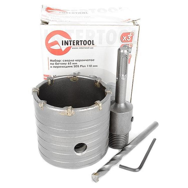 Комплект: сверло корончатое по бетону 65 мм+Переходник SDS Plus 100мм INTERTOOL SD-7065
