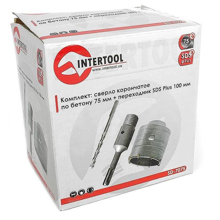 Комплект: сверло корончатое по бетону 75 мм+Переходник SDS Plus 100мм INTERTOOL SD-7075