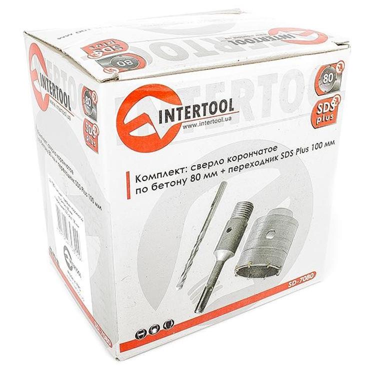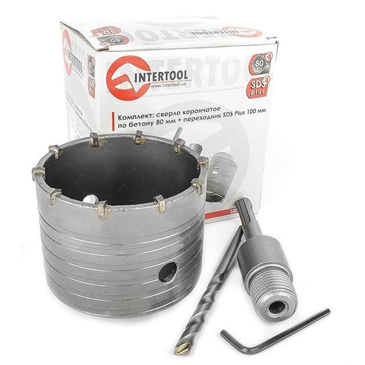 Комплект: сверло корончатое по бетону 80 мм+Переходник SDS Plus 100мм INTERTOOL SD-7080