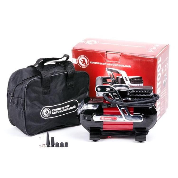 Компактный автомобильный компрессор INTERTOOL AC-0002 станет вашим надежными помощником в гараже, в дороге или в путешествии. Рабочее давление до 7 атмосфер позволит накачать до рабочего состояния колеса автомобиля, мотоцикла или велосипеда, а также мячи, матрацы, круги и любые другие надувные изделия благодаря набору насадок, который поставляется в комплекте.