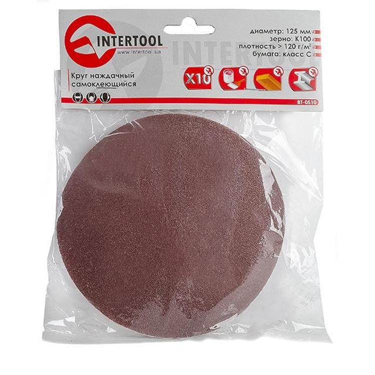 Круг наждачный самоклеющийся 125 мм, К100, уп. 10 ед. INTERTOOL BT-0510