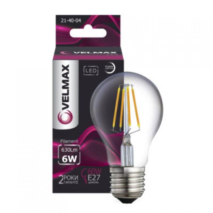 LED лампа V-Filament-A60, 6W, E27, 4100K, 630Lm VELMAX