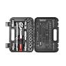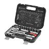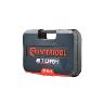 Кейс черного цвета изготовлен из прочного пластика, усилен ребрами жесткости и получил стильный дизайн. Металлические замки и надежные петли сделали его долговечным. Весь инструмент плотно лежит на своих местах, даже при движении автомобиля. Компактный размер набора (300*220*75 мм) позволяет хранить его в любом удобном для вас месте.