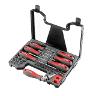 Весь набор размещен в компактном кейсе (300*200*50 мм), где реверсивная отвертка с карданом выступает в роли ручки. Это позволяет экономить пространство при хранении, а также удобно переносить комплект. Комплектующие всегда остаются на своих местах и не выпадают при транспортировке - набор закрывается на две защелки.