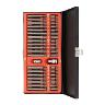 Весь набор помещен в прочный металлический кейс, который закрывается защелку из металла. Удобно транспортировать и хранить набор, все насадки размещены в персональных пронумерованных ячейках - вы быстро найдете необходимую биту.