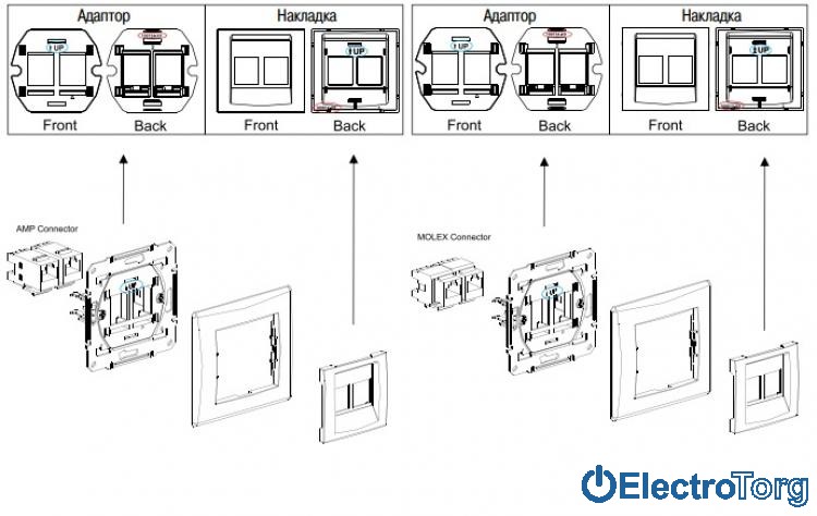 Накладка для коннекторов AMP/Molex/Keline 5e и 6 UTP модуль слоновая кость Sedna Schneider Electric (Шнайдер Электрик)