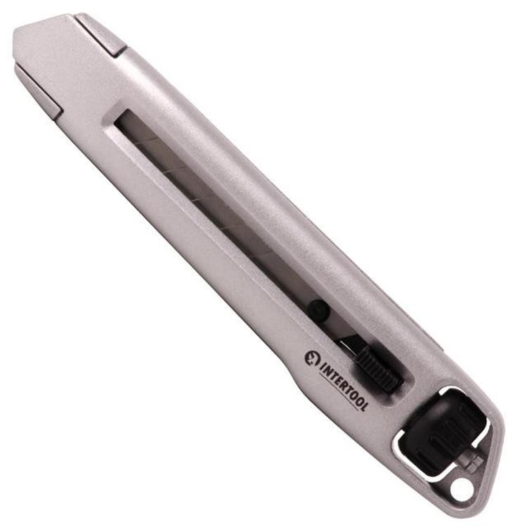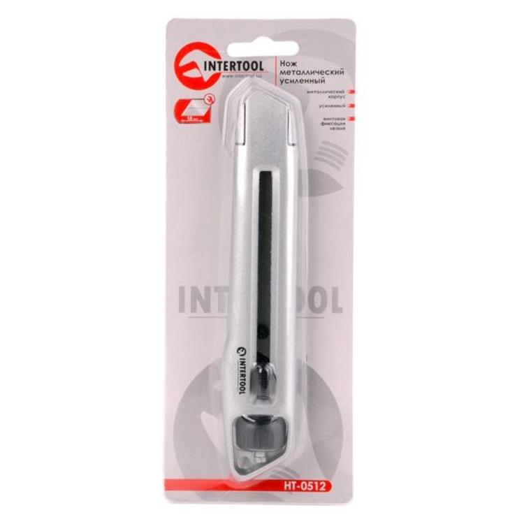 Нож металлический усиленный с винтовой фиксацией лезвия INTERTOOL HT-0512