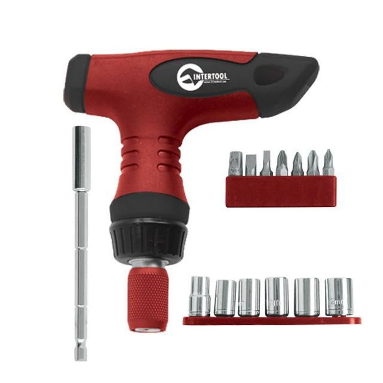 Отвертка Т-образная реверсивная с цанговым зажимом, комплектом насадок 15 ед. INTERTOOL VT-1015