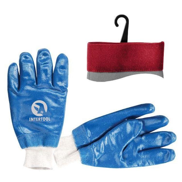 Перчатка маслостойкая х/б трикотаж покрытая нитрилом c вязаным манжетом 10.5"(синяя) (120пар/ящ) INTERTOOL SP-0137W