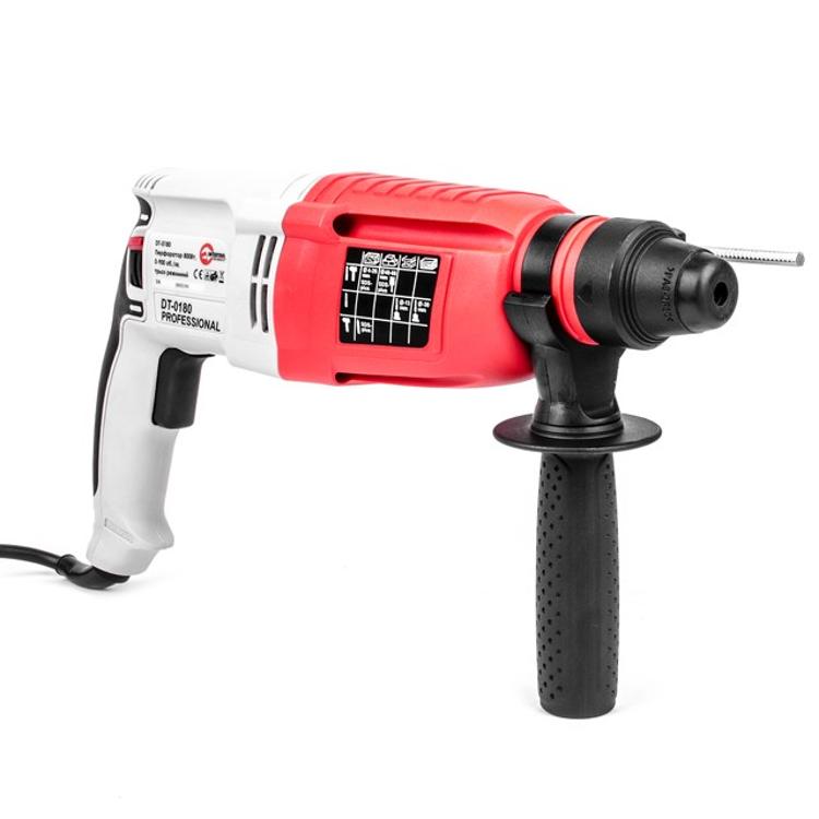Перфоратор – электрический сетевой инструмент предназначенный для сверления, сверления с ударом и просто ударного воздействия. Перфораторы разделяют на два типа: с электромагнитным ударом и пневматическим ударом. Большинство перфораторов применяют с ударом пневматического типа. Перфоратор DT-0180 пневматического типа и это лучший выбор для строительства, ремонта и прочих работ, связанных со сверлением, штроблением, дроблением материала (кроме металла).