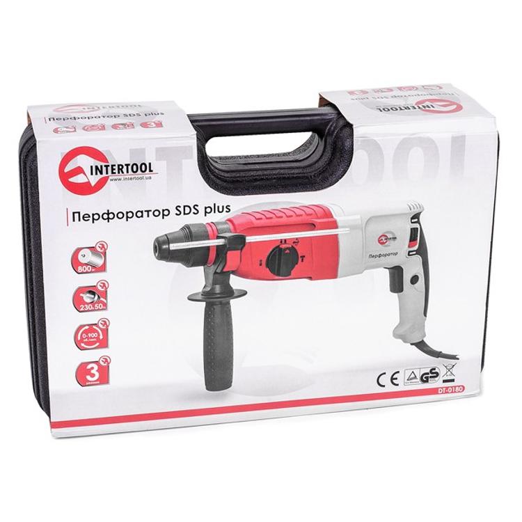 Перфоратор SDS-plus 850 Вт, 0-900 об/мин, 0-4400 уд/мин, 3 режима, реверс, кейс, аксессуары INTERTOOL DT-0180
