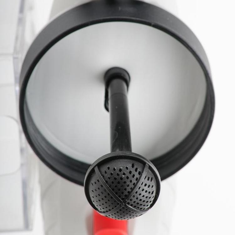Корпус изготовлен из качественного пластика приятного на ощупь. Кнопка включения расположена у самого верхнего основания рукоятки. Это сделано для того, что бы основной вес краскопульта был распределен на запястье человека. Тем самым, усталость и нагрузка на руку минимальна, а процесс покраски становится более удобным и комфортным. Рукоятка имеет резиновую накладку для лучшего захвата инструмента и исключает скольжение.