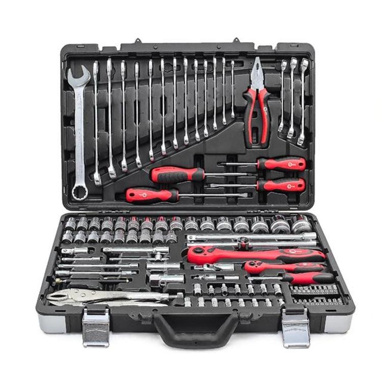 Практически все инструменты набора изготовлены из высококачественной хром-ванадиумной стали, что обеспечивает им долгий срок эффективной эксплуатации. Двухкомпонентные рукоятки удобно лежат в руке и не скользят. Отдельного внимания заслуживают ультра-легкие трещотки на 72 зубца с возможностью сброса и фиксации торцевых головок. Эти рукоятки полностью покрыты защитным слоем из полипропилена, что исключает возможность появления коррозии. Набор размещен в надежном кейсе из ударопрочного пластика с укрепленными металлом уголками и металлическими замками.