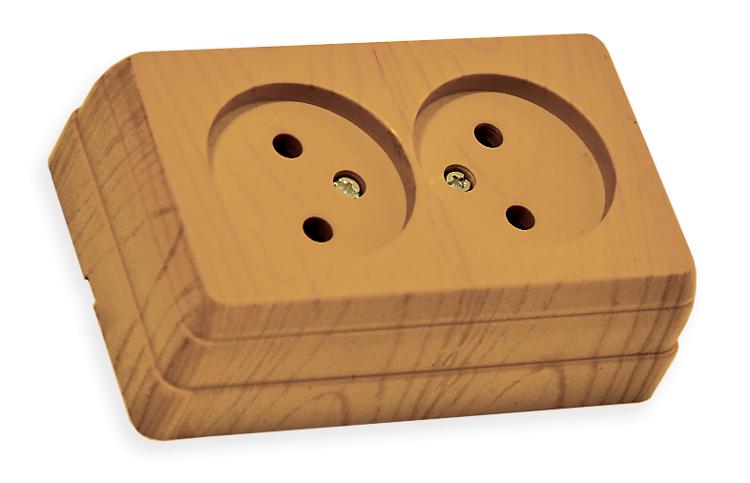Розетка подвійна, б/з, 16А, BRON, Mutlusan, дуб, (2160 203 0258)