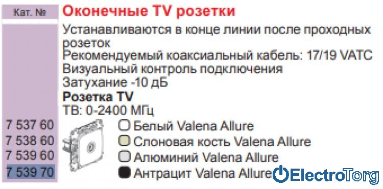 Механизм розетки телевизионной TV с топологией шлейф оконечный антрацитовый Valena ALLURE Legrand