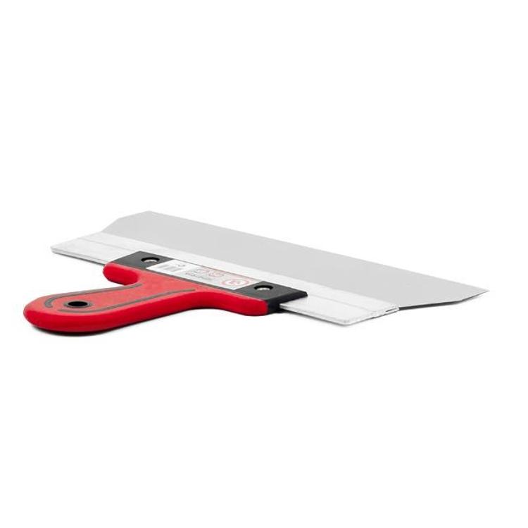 Шпатель обладает усиленной двухкомпонентной ручкой из резины и пластика. Она имеет эргономичную форму, комфортно лежит в руке и обеспечивает надежный захват.