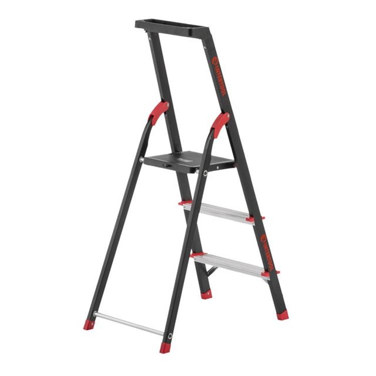 Стремянка 3 ступени, лоток для инвентаря, стальной профиль, высота верхней ступени 630мм, 409х667х1132мм, 150кг INTERTOOL LT-0053