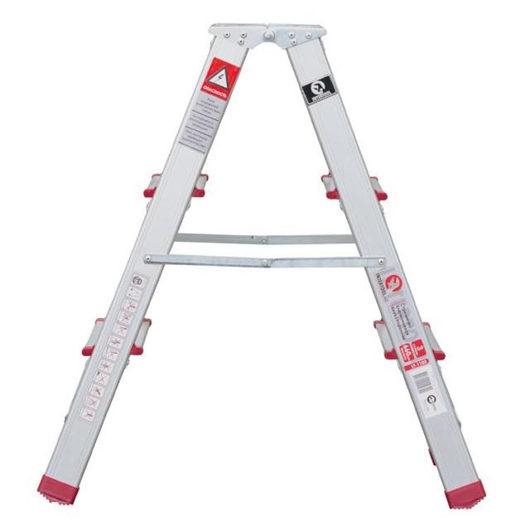 - Двусторонняя стремянка с двумя предохранителями из алюминия;