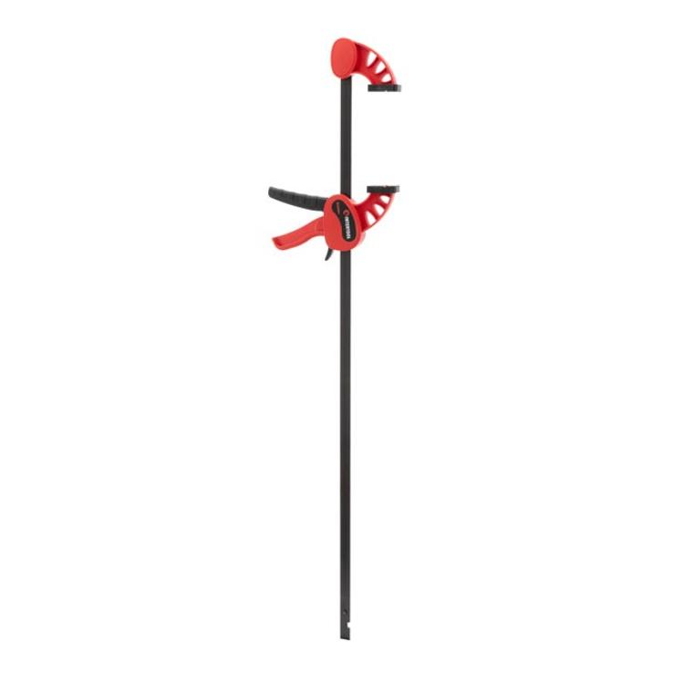 Конструкция струбцины изготовлена из высококачественного первичного пластика, а направляющая из цельной стали для долгой и надежной службы. Максимальная прочность корпуса достигается за счет наличия усиленных ребер жесткости.