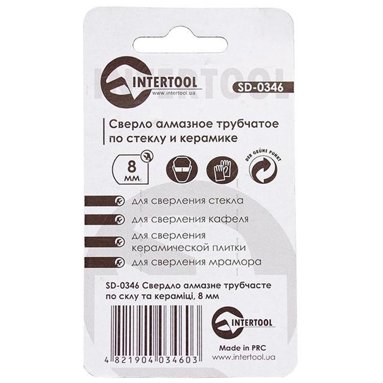 Сверло алмазное трубчатое по стеклу и керамике 8 мм INTERTOOL SD-0346