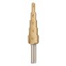 Сверло имеет коническую форму, с увеличивающимся диаметром на 2 мм за шаг. Режущие кромки из быстрорежущей стали (HSS), эффективно справляются со своей работой и долго остаются острыми. При необходимости сверло можно заточить.