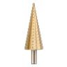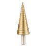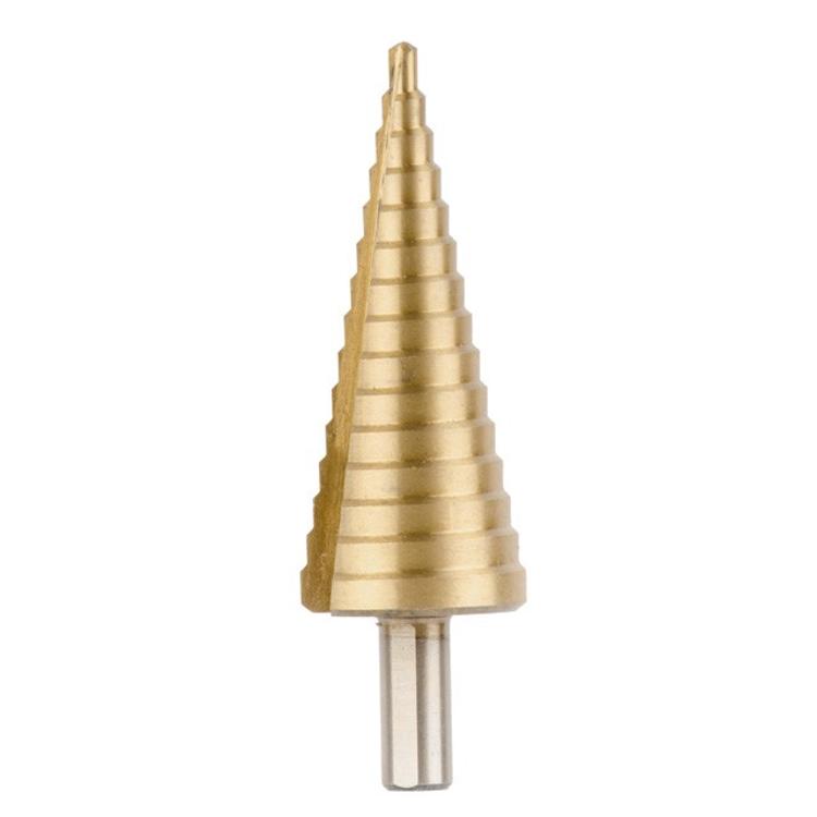 Сверло имеет коническую форму, с увеличивающимся диаметром на 2 мм за шаг. Режущие кромки из HSS стали, эффективно справляются со своей работой и долго остаются острыми. При необходимости сверло можно заточить.