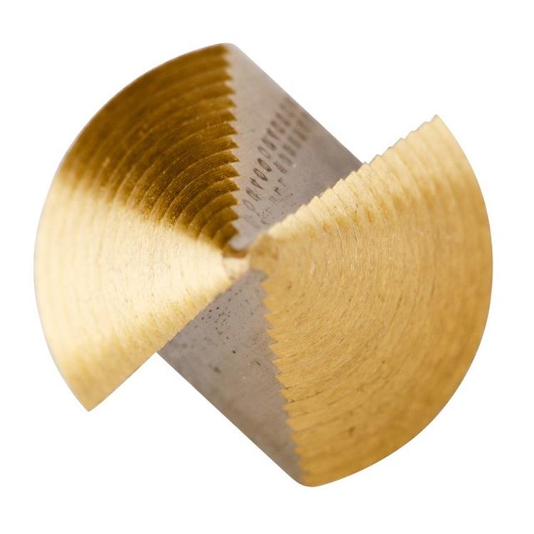 Две широкие канавки без труда отводят стружку и обеспечивают охлаждение рабочей части инструмента. Внутри одной из канавок нанесена шкала диаметров, что значительно упрощает работу.