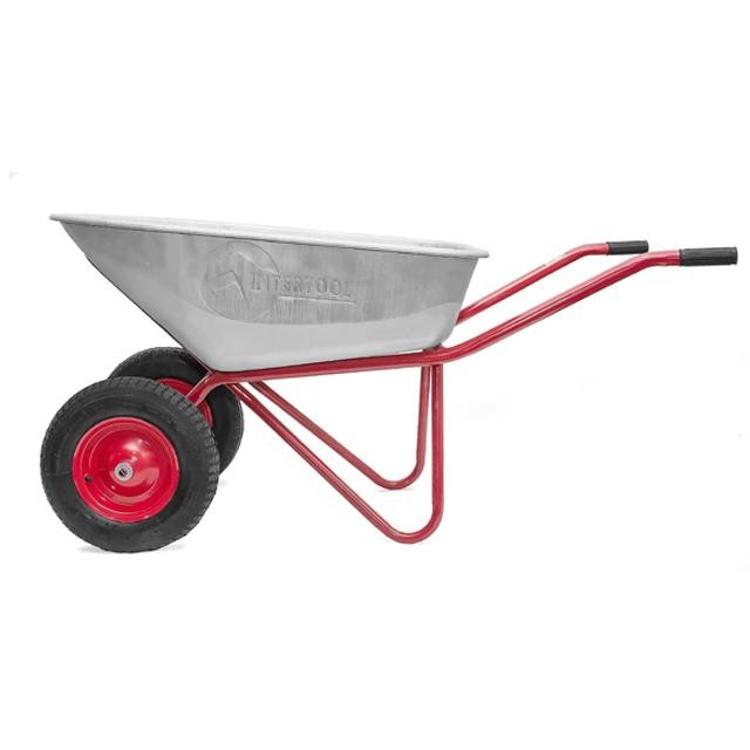 Тачка WB-1025 имеет оцинкованный съемный лоток объемом 100 литров. Тачка состоит из разборных частей, которые компактно размещены в упаковке. Рамная конструкция выполнена из цельногнутой трубы, что увеличивает общий ресурс тачки и выдерживает заявленную нагрузку. Тачка WB-1025 имеет два пневмоколеса с подшипником, размером 15 дюймов (4.00-8). Применяемая толщина листа при производстве тачки составляет уже 0,9 мм, а грузоподъемность тачки составляет 180 кг. Это одна из самых объемных тачек из представленных новинок INTERTOOL.