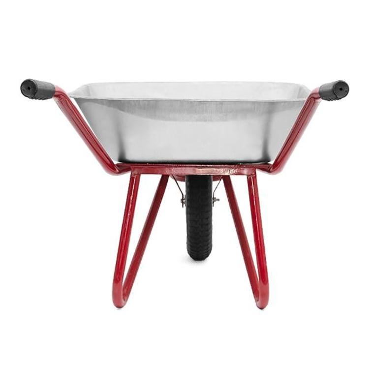 Тачка WB-0615 по свое конструкции очень напоминаеттачку WB-0613.Но, тип лотка немного отличается – съемный, оцинкованный, объемом 65 литров. Тачка состоит из разборных частей, которые компактно размещены в упаковке. Рамная конструкция выполнена из цельногнутой трубы, что увеличивает общий ресурс тачки и выдерживает заявленную нагрузку. А мощные кронштейны уверенно держат колесо на своей оси. Применяемая толщина листа при производстве тачки составляет 0,6 мм, а грузоподъемность тачки составляет 150 кг.