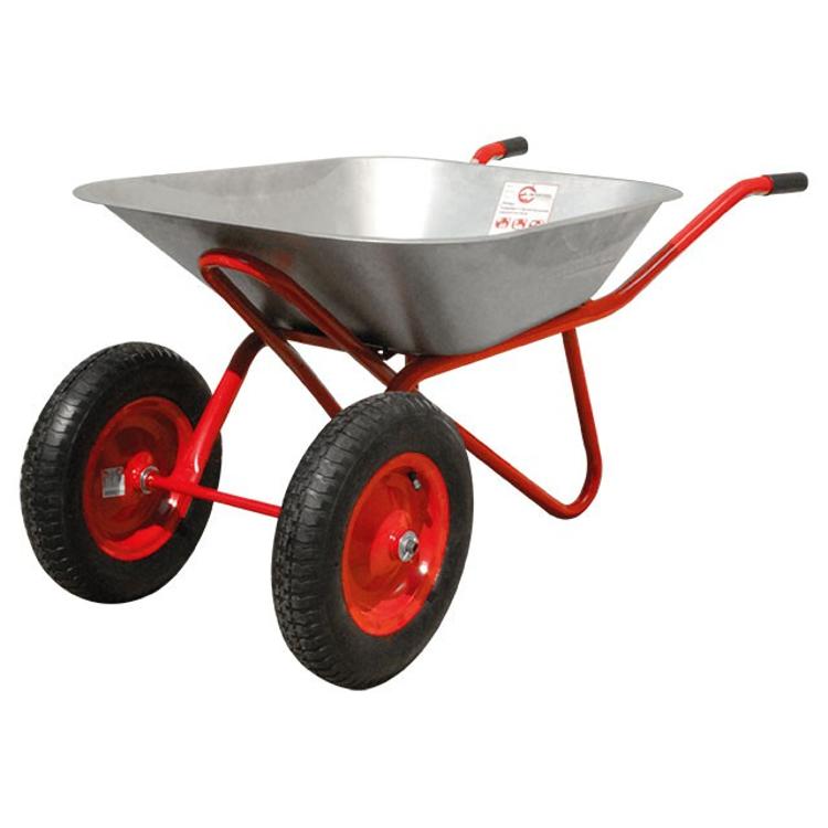 Тачка WB-0625 имеет съемный, оцинкованный лоток объемом 65 литров. Тачка состоит из разборных частей, которые компактно размещены в упаковке. Рамная конструкция выполнена из цельногнутой трубы, что увеличивает общий ресурс тачки и выдерживает заявленную нагрузку. Эта тачка уже оснащается двумя пневмоколесами. Применяемая толщина листа при производстве тачки составляет 0,6 мм, а грузоподъемность тачки составляет 160 кг.