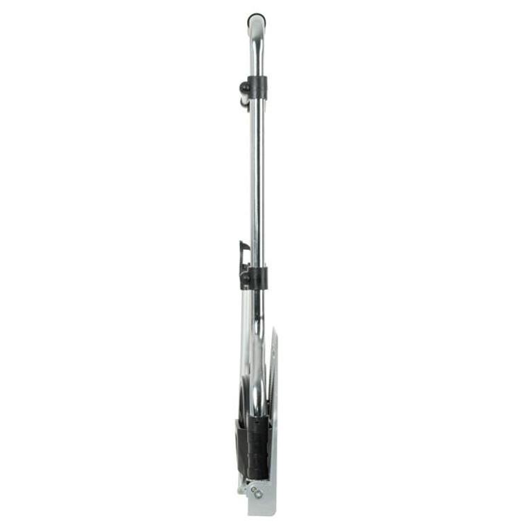 Тележка изготовлена из стали, служит надежно и долговечно. Выдвижная ручка, удобная по высоте (98 см), фиксируется замком, как в сложенном, так и в разложенном виде. Откидная алюминиевая платформа с габаритами 48 х 24 см позволяет быстро подхватывать груз. Надежная, не гнется и не деформируется, благодаря ребрам жесткости, рифленой поверхности и загнутому опорному краю.