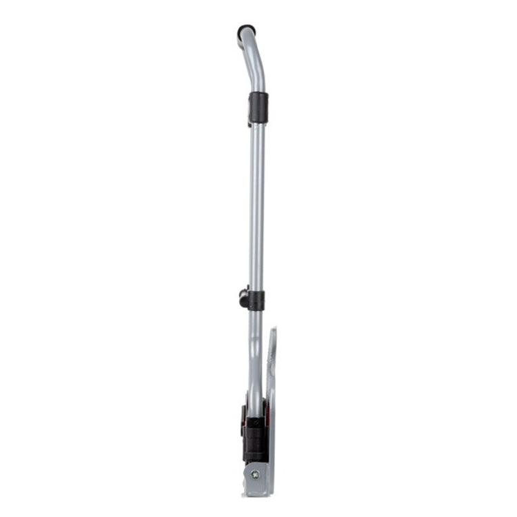 Тележка изготовлена из стали, служит надежно и долговечно. Выдвижная ручка, удобная по высоте (96 см), фиксируется замком, как в сложенном, так и в разложенном виде. Откидная стальная платформа с габаритами 38.5 х 23.5 см позволяет быстро подхватывать груз. Надежная, не гнется и не деформируется, благодаря ребрам жесткости, рифленой поверхности и загнутому опорному краю.