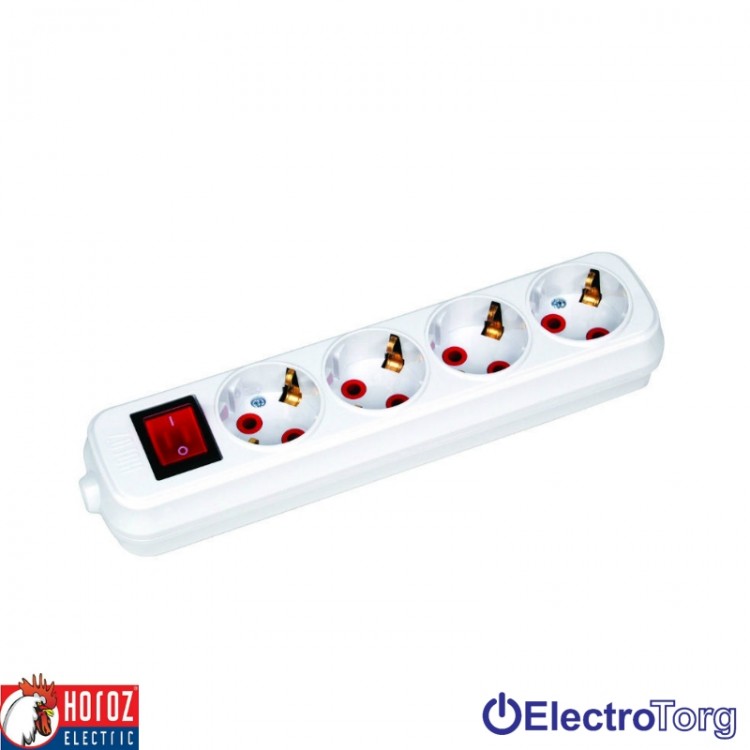 Удлинитель 4 гнезда c/з и кнопкой (шнур 5 метров) Horoz Electric