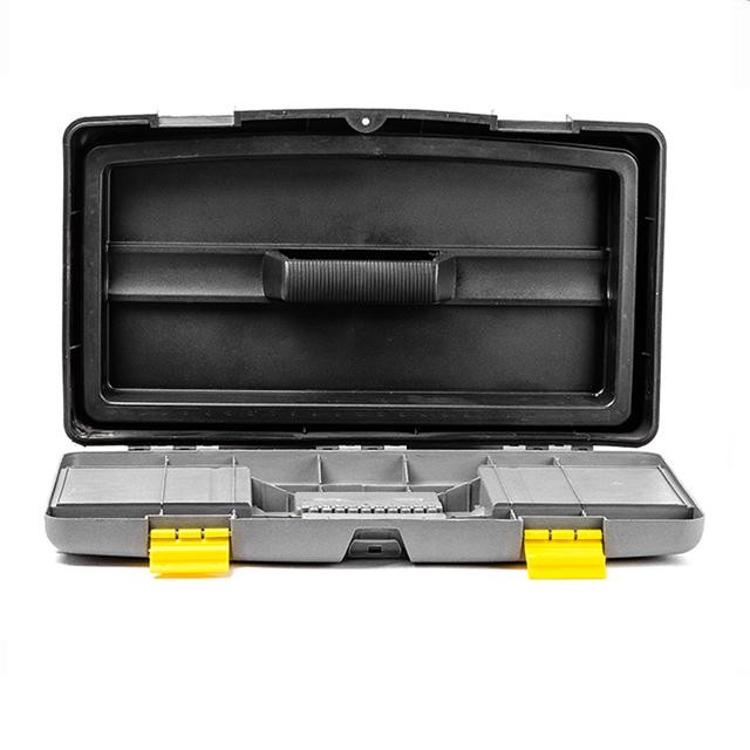Ящик для инструмента INTERTOOL BX-0326 практичен и удобен в использовании. На крышке расположены два отдельных съемных органайзера с разнообразными ячейками, которые отлично подойдут для хранения метизов или любой другой мелочи. Там же расположен отдел для хранения отверточных насадок, который закрывается прозрачной крышкой.