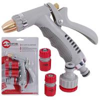 Комплектация: пистолет поливочный 1/2" , коннектор 1/2" для шланга 1/2" , коннектор с аквастопом 1/2" для шланга 1/2" , адаптер с внутренней резьбой 1/2" и 3/4"