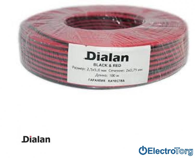 Акустический кабель CCA 2х0.75 (черно-красный) 100 м Dialan (Диалан)