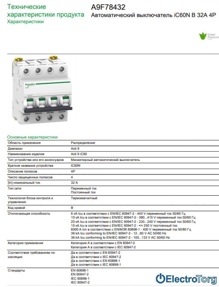 - Серия - бренд Acti9 iC60 Schneider Electric