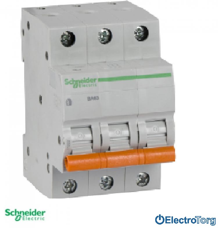 Автоматический домовой выключатель Schneider electric ВА63 3П 50A C поможет обезопасить Вашу электрическую сеть. Эта уникальная модель подходит как для установки в домах, так и в промышленности. Выключатель быстро реагирует на скачки напряжения и выполняет аварийное отключение. С этим автоматом Вы сохраните в десять раз больше денег и всю свою электротехнику от поломок. Такое изделие, должно находиться в каждом помещении, где находится больше двух единиц техники.