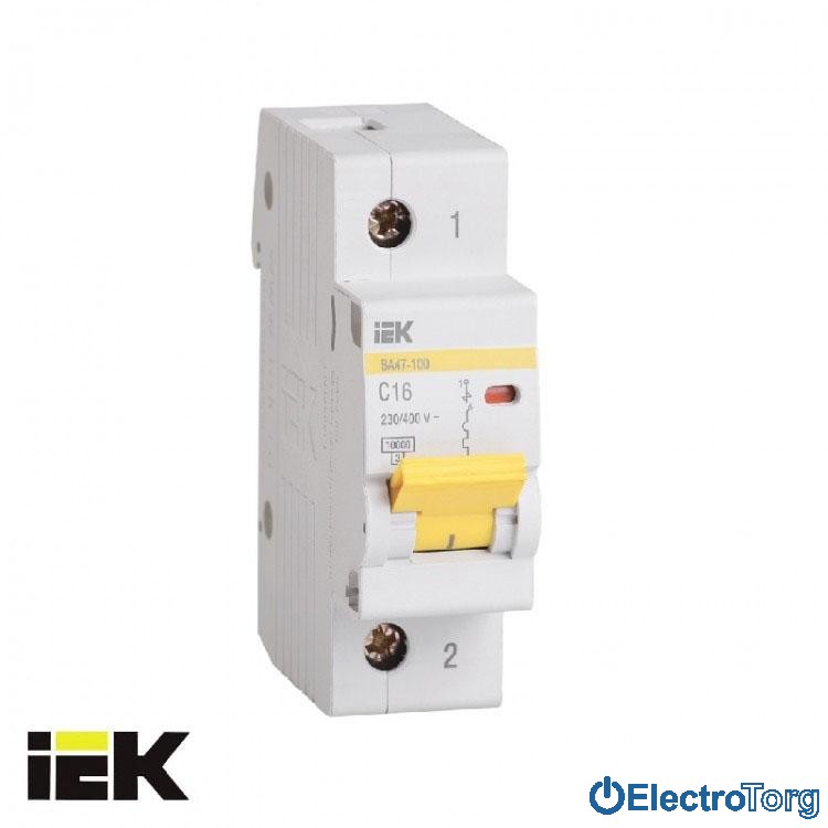 Автоматический выключатель ВА47-100 1P 10кА С 16A ИЭК(IEK)